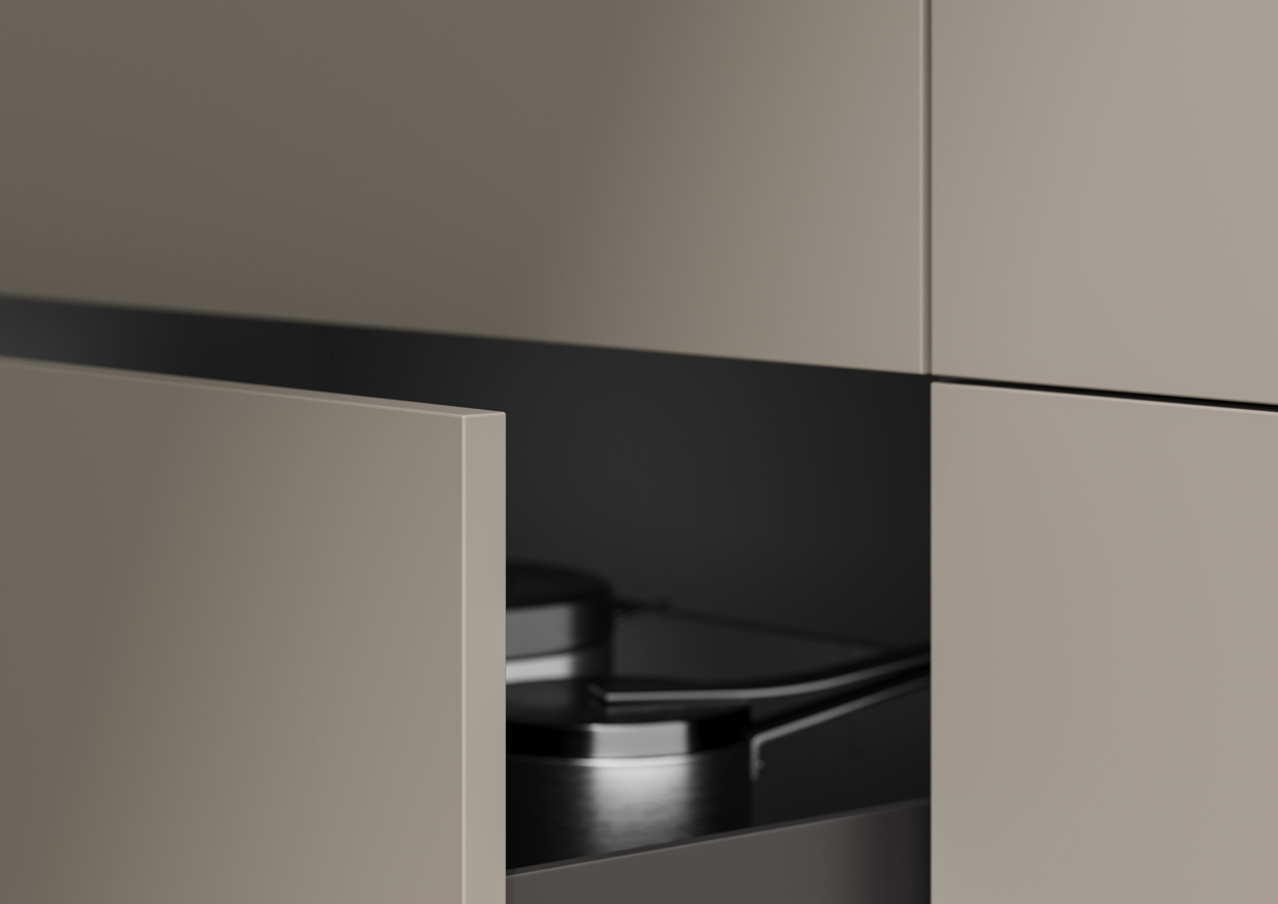 Deze keuken is de herkennen aan zijn greeploze fronten. Geen knoppen of handgrepen, want less is more. Een keuken waarin zelfs apparatuur greeploos kan worden weggewerkt. Een greeploze keuken straalt veel rust uit, er zijn geen keukengrepen die aandacht trekken.